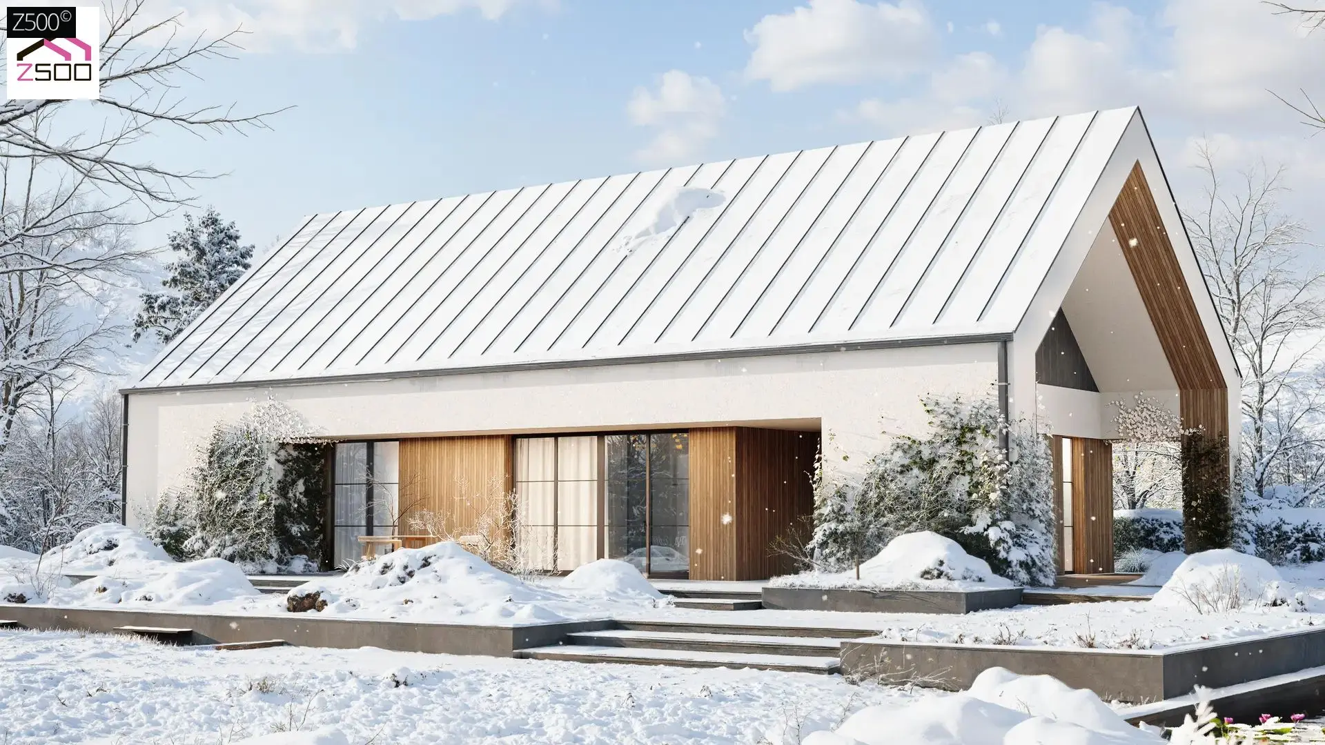 - Z50871 m²Современный одноэтажный дом с лаконичной террасой и выразительным фасадом
