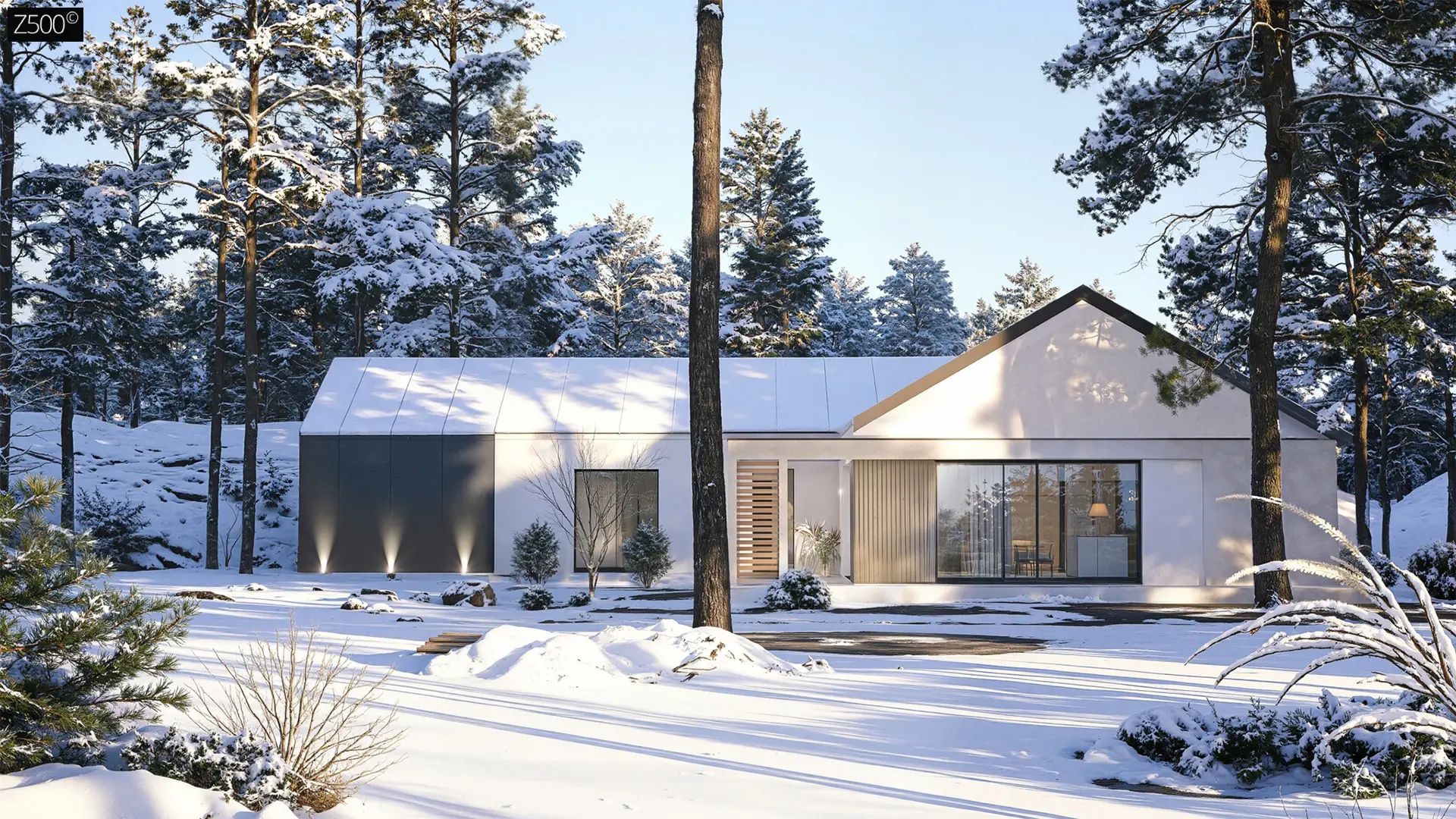 - Z509111 m²Cовременный одноэтажный дом с большими окнами и уютной террасой
