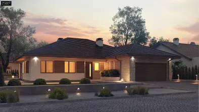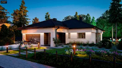Z583104 m²Проект дома с гаражом и приватной зоной спален — максимум комфорта на 1 этаже