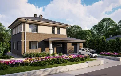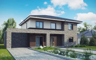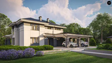Zx190216 m²Стильный дом в современном стиле с гаражом для 3 машин