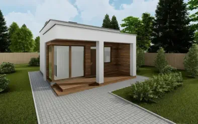 Z50871 m²Современный одноэтажный дом с лаконичной террасой и выразительным фасадом