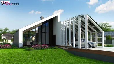 - Z52198 m²Проект минималистичного одноэтажного дома с гаражом и террасой для летних ужинов