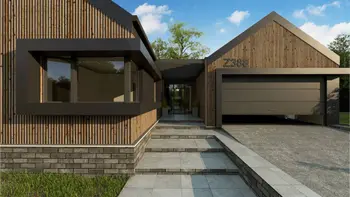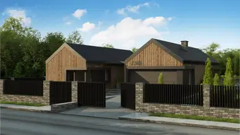 Cовременный одноэтажный дом с 2-х скатной крышей и гаражом