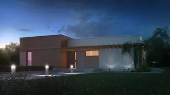 Современный одноэтажный дом с комфортной планировкой и гаражом для двух автомобилей, адаптированный под сейсморегионы.