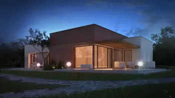 Современный дом без свесов кровли. Проект подойдет для удлиненного участка