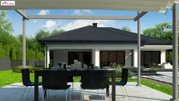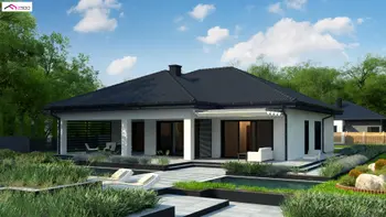 Проект дома с одноуровневой оригинальной планировкой и современным экстерьером.