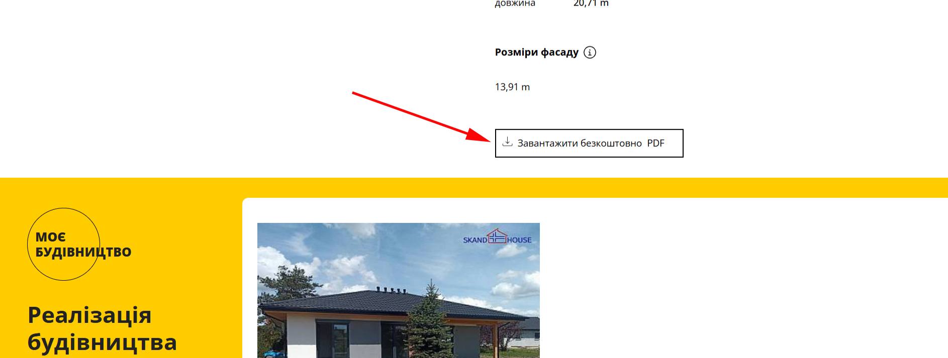 Для зручності використовуйте планування з лінійними розмірами приміщень, розміщене на сторінці проєкту на нашому сайті. Щоб його завантажити, натисніть на кнопку «завантажити безкоштовно PDF» на сторінці проєкту.