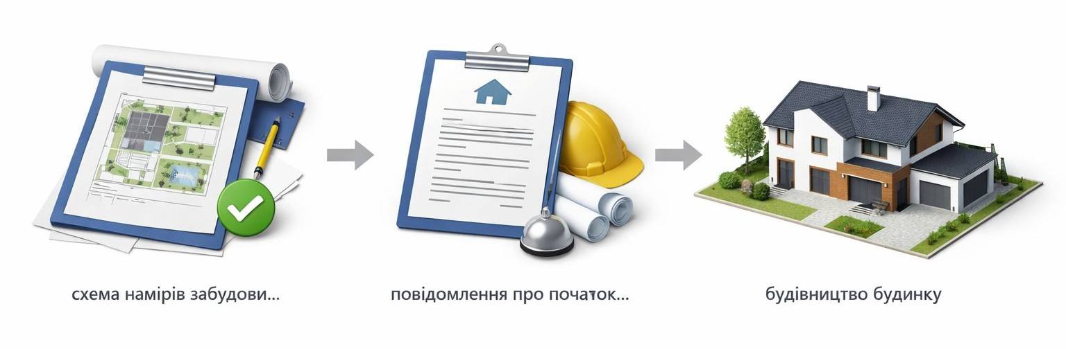 В Украине больше не существует «разрешения на строительство» как отдельного документа. Его отменили. Вместо него используется уведомление о начале строительных работ (повідомлення про початок будівельних робіт). Проще говоря, будущий владелец дома официально сообщает государству: «Я начинаю строить».